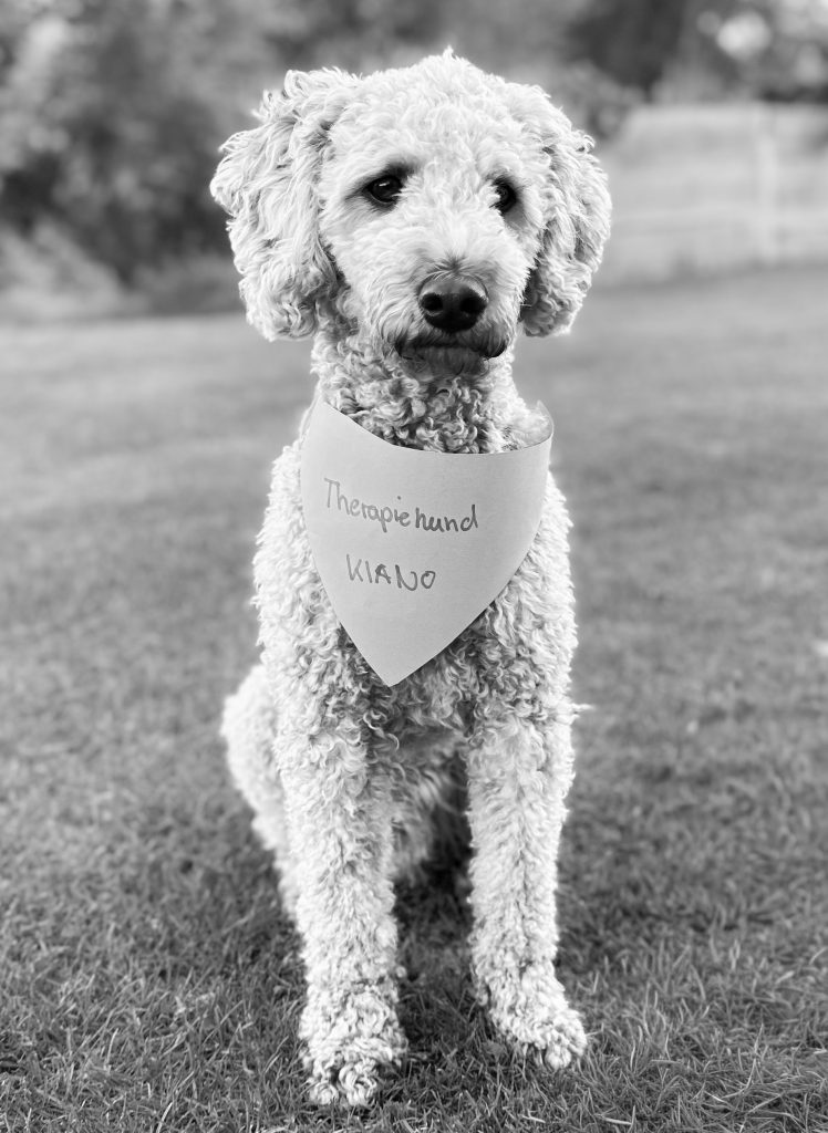 Eine besondere Unterstützung bietet mein Therapiehund Kiano, der mich gelegentlich in den Sitzungen begleitet.